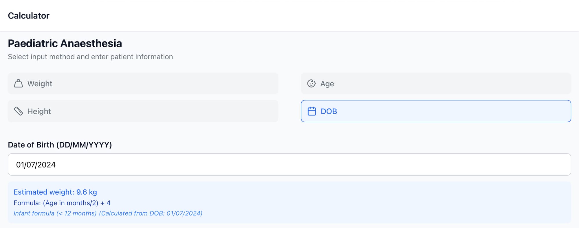 I included a weight-based dosing calculator, with multiple paths to the estimated weight of the child, including age, exact date of birth or height.