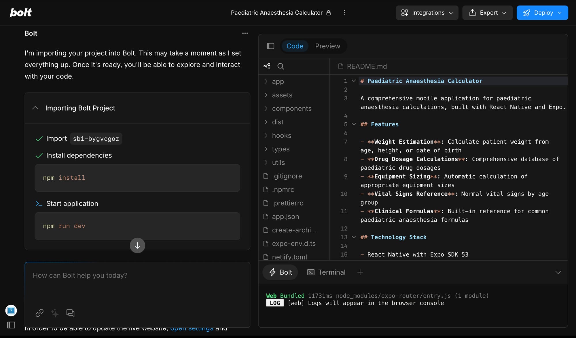 I used Bolt to generate a code base from plain text prompts of what I wanted: